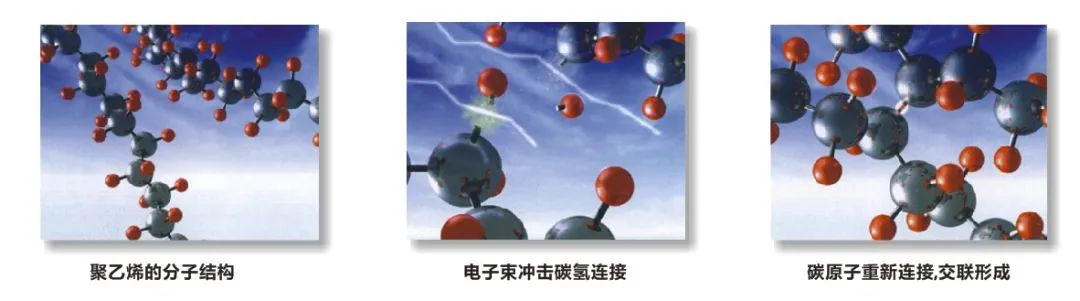2、电子加速器发射出高能电子束,切断部分氢原子与碳原子之间的化学键,使氢原子从聚乙烯分子链分离出来,分子呈不稳定机构。